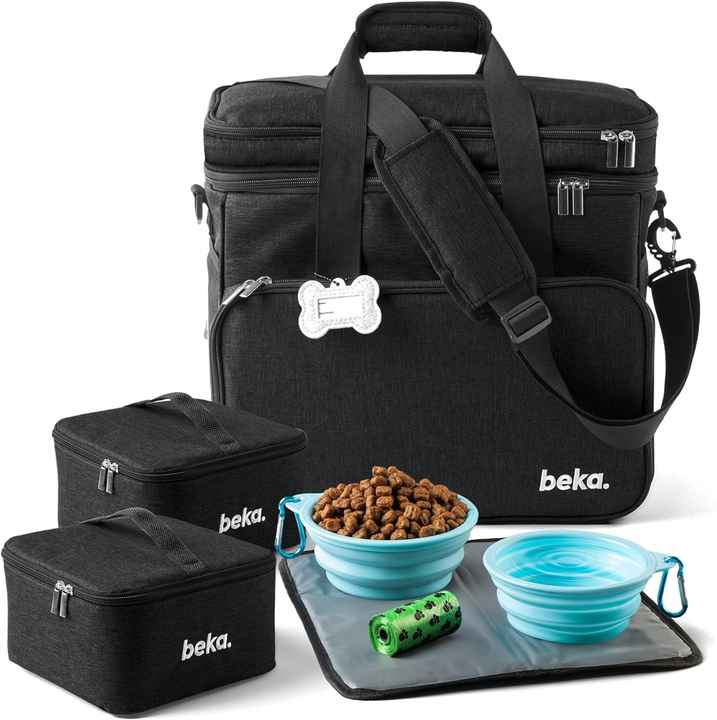 Muestra gratuita - Bolsa de viaje para perros - Organizador de viaje para mascotas con contenedor de comida y tazones, perfecto para acampar en fin de semana