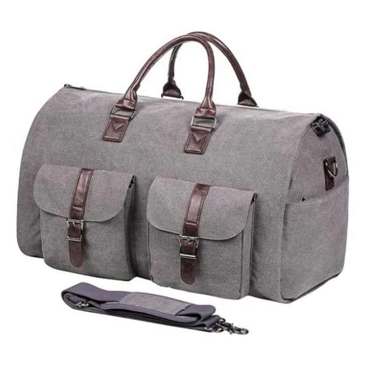Muestra gratuita de bolsas de viaje tipo maleta colgante de doble propósito con correas para el hombro para transportar prendas