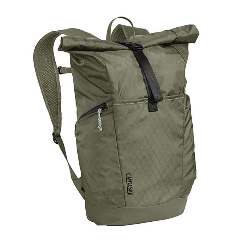 Muestra gratuita de mochila de lona y cuero elegante y personalizada, con parte superior enrollable, para exteriores, de buena calidad.