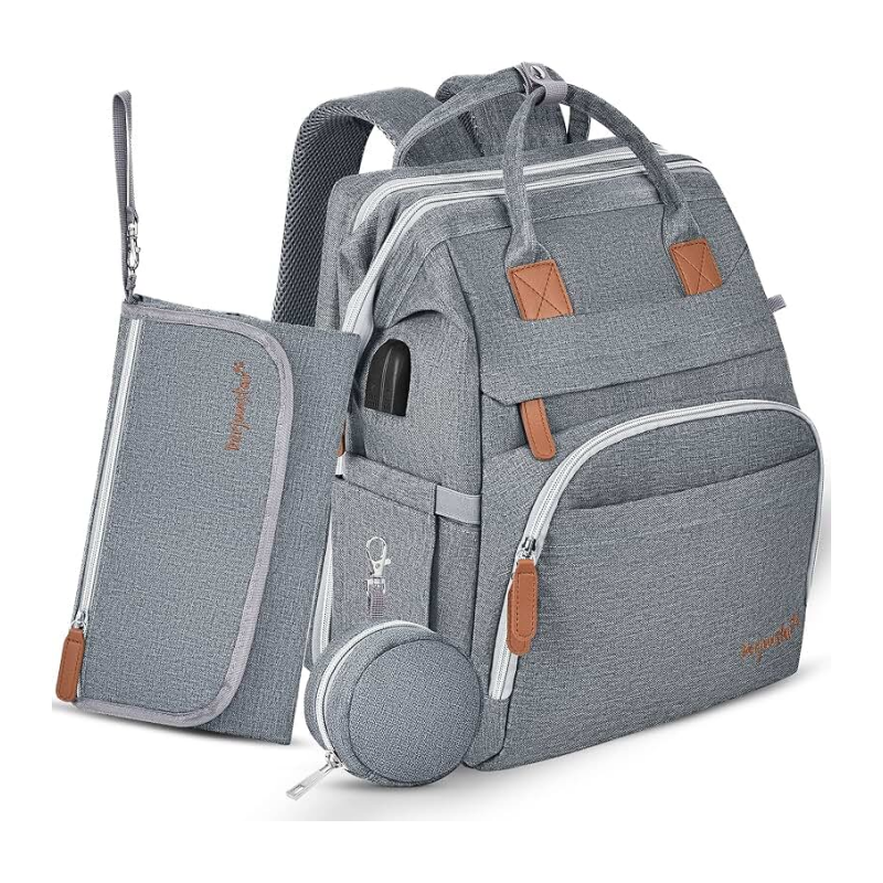 Muestra gratuita de bolso de pañales moderno y duradero, bolso de pañales con correa para mamá, bolso grande con cambiador