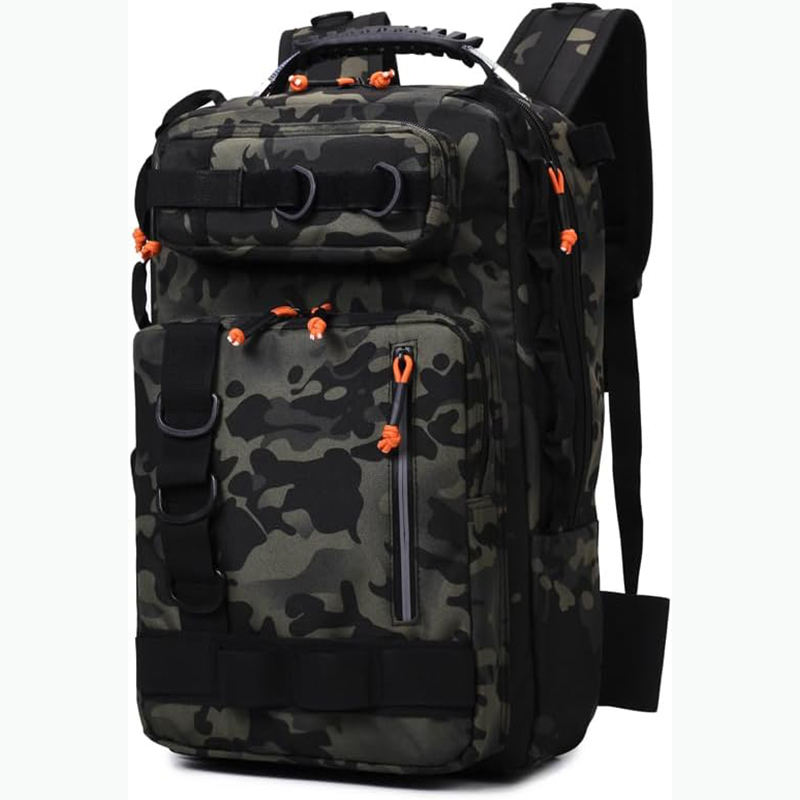 Mochila de pesca de muestra gratis, mochila de aparejos de pesca con soportes para caña, 45L 600D bolsa de pesca grande almacenamiento equipo de pesca