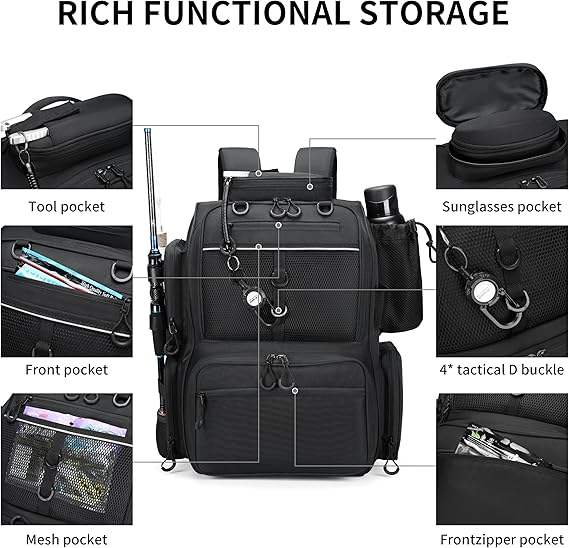 Mochila de Pesca con 4 Cajas de Aparejos, Mochila de Pesca con Soportes para Cañas, Bolsa de Pesca Grande de 45L 600D, Muestra Gratis