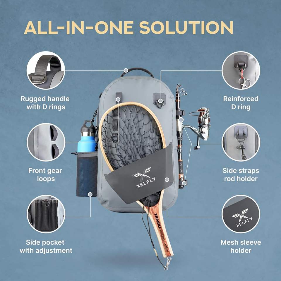 Mochila de Pesca con Portacañas de Muestra Gratuita, Mochila de Pesca de 40L con Caja de Aparejos, Bolsa de Pesca Impermeable para Hombre