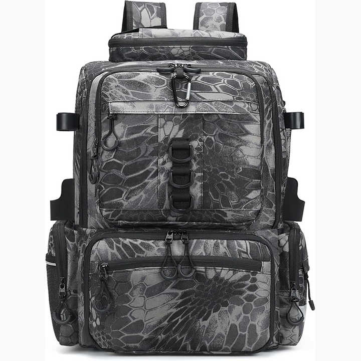 Mochila de Pesca con Portacañas, 4 Cajas de Pesca y Cubierta Impermeable, 43L de Gran Capacidad para Equipo de Pesca (Muestra Gratuita)