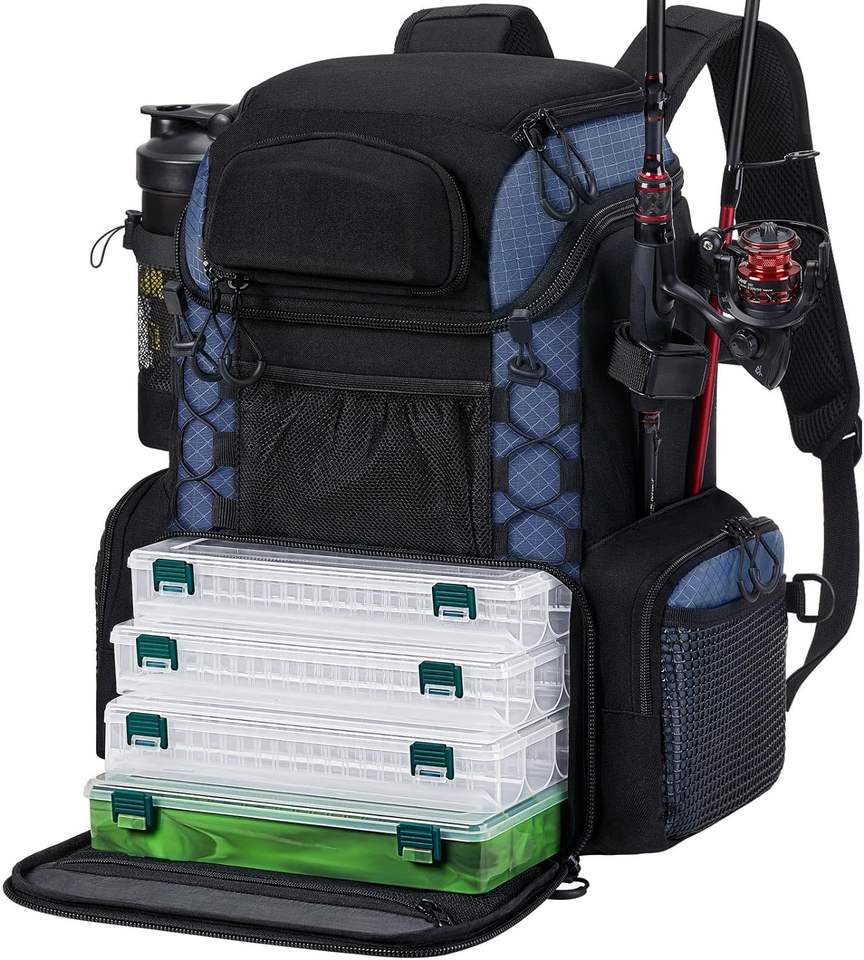Mochila de Pesca con 4 Bandejas de Muestra Gratuita, Bolsa de Almacenamiento Grande para Exteriores con Cubierta Protectora para la Lluvia para la Pesca