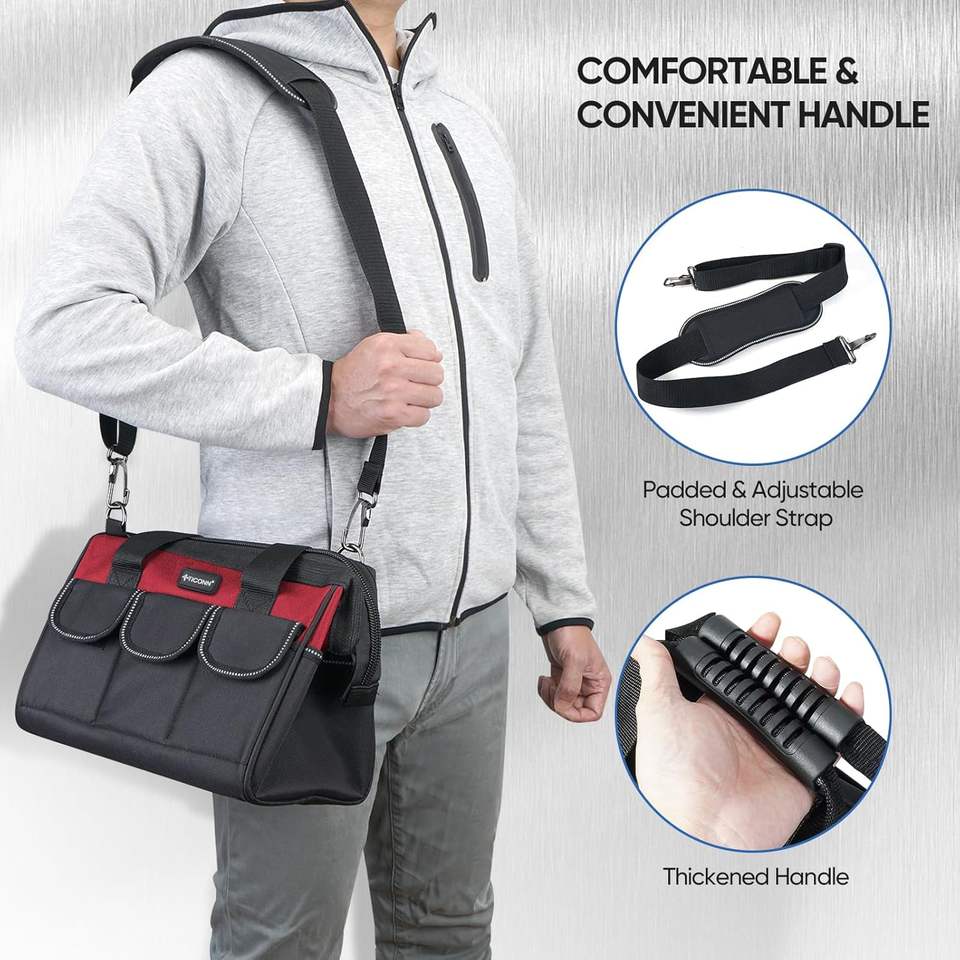 Muestra Gratuita, Bolsa Organizadora de Herramientas de Alta Resistencia para Electricistas, con 21 Bolsillos, Apertura Superior Manual