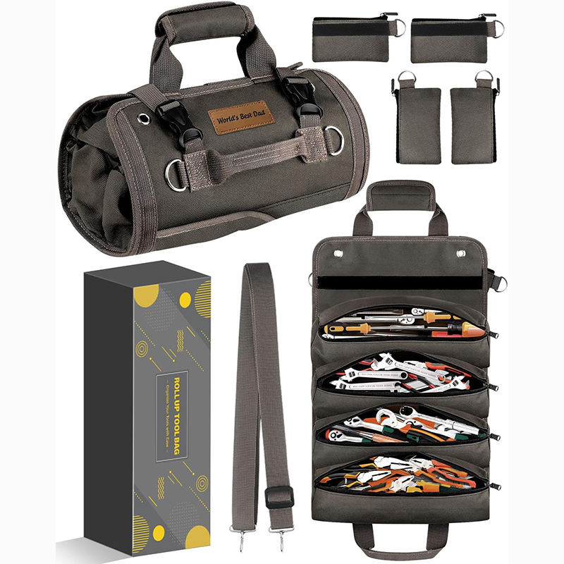 Organizador de Herramientas Resistente de Muestra Gratuita para Hombres y Mujeres, Bolsa de Herramientas Portátil Enrollable con Bolsillo con Cremallera, Bolsa de Herramientas Compacta y Pequeña