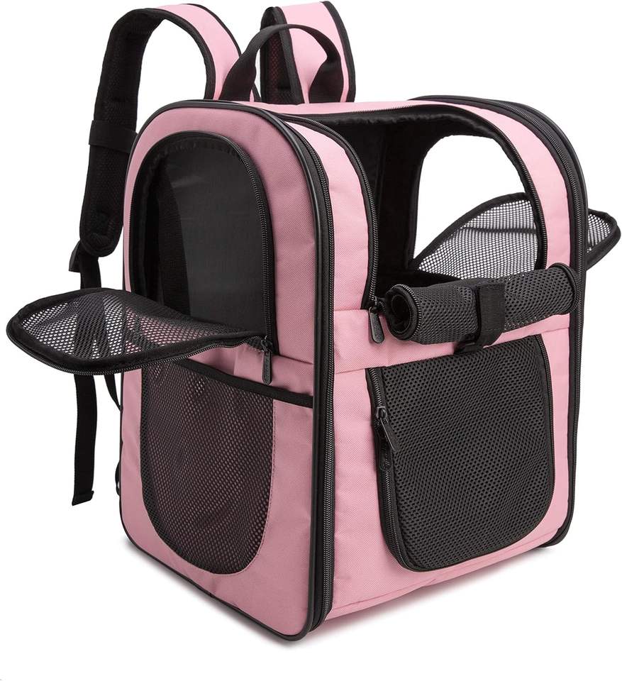 Mochila de malla para gato y perro de raza pequeña roja 25x60x40 cm