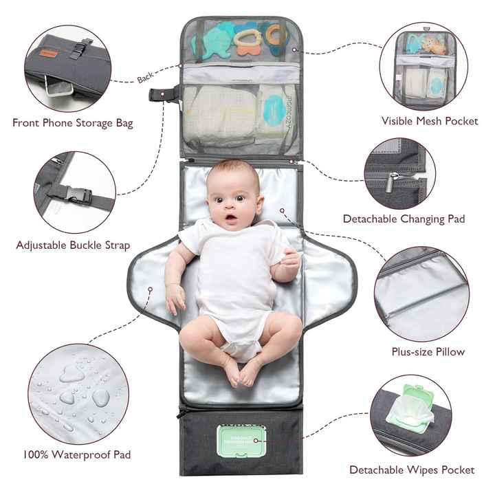 Muestra Gratuita, Cambiador de Bebé Ligero, Impermeable, para Viajes, Bolsa de Pañales, Cambiador Portátil Plegable