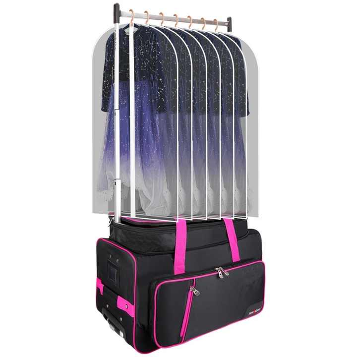 Muestra gratuita de bolsa de viaje ligera, resistente al desgaste, con perchero y bolsa de baile con ruedas.