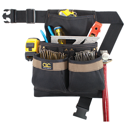 Muestra gratuita de bolsas de herramientas multiusos con bolsillo para la cintura y un bolsillo de piel de vaca para carpintería y decoración de uñas que resiste al desgaste
