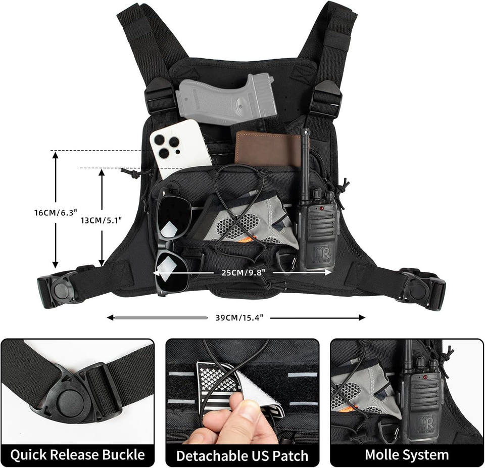 Chaleco Táctico Modular de Nailon con Sistema de Liberación Rápida, Bolsa de Pecho con Sistema Molle y Portacargadores, Muestra Gratuita
