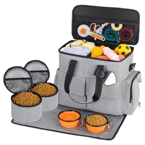 Bolsa de viaje para mascotas de muestra gratis, mochila de suministros para mascotas de doble capa (para todos los suministros de viaje para mascotas), mochila de viaje para mascotas