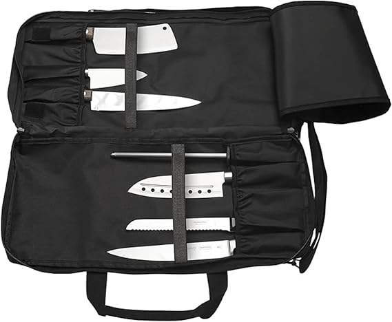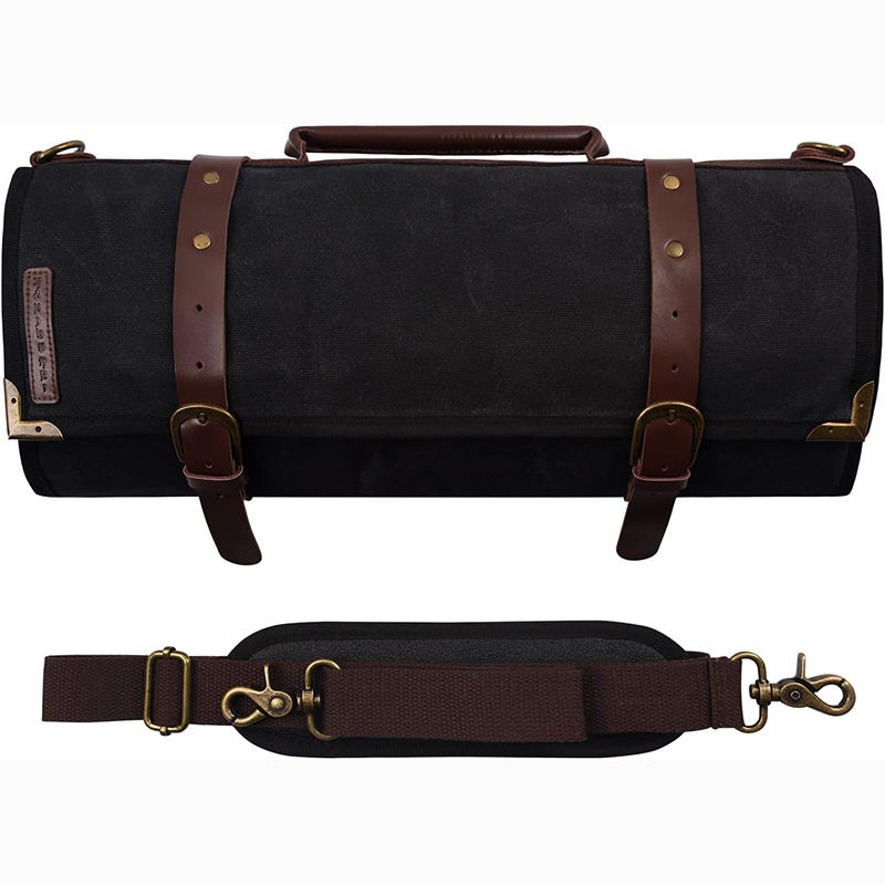 Estuche Portacuchillos de Lona Encerada con 4 Ranuras para Utensilios de Cocina, Bolsa Enrollable para Cuchillos de Viaje, Muestra Gratuita