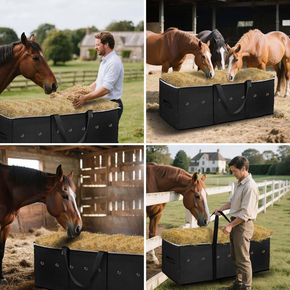 Muestra gratis de bolsa de red de heno de alimentación lenta para caballos, cabras, ovejas, puesto colgante, alimentador con servicio de corte para uso estable