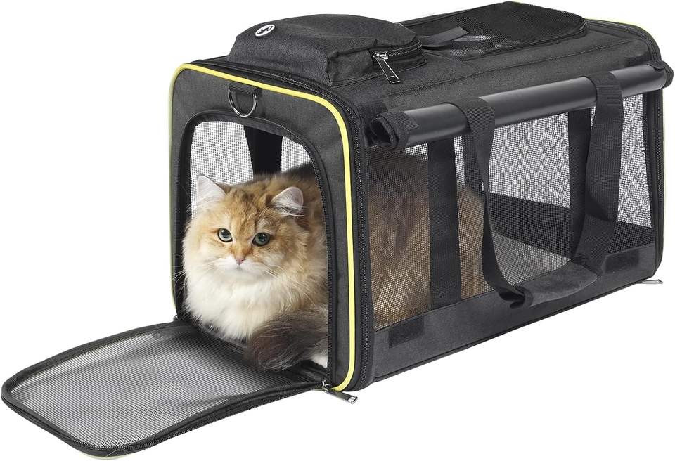 Muestra Gratis de Transportadora de Mascotas Plegable de Tela Suave con 3 Puertas, Correas y Tapete de Felpa para Perros