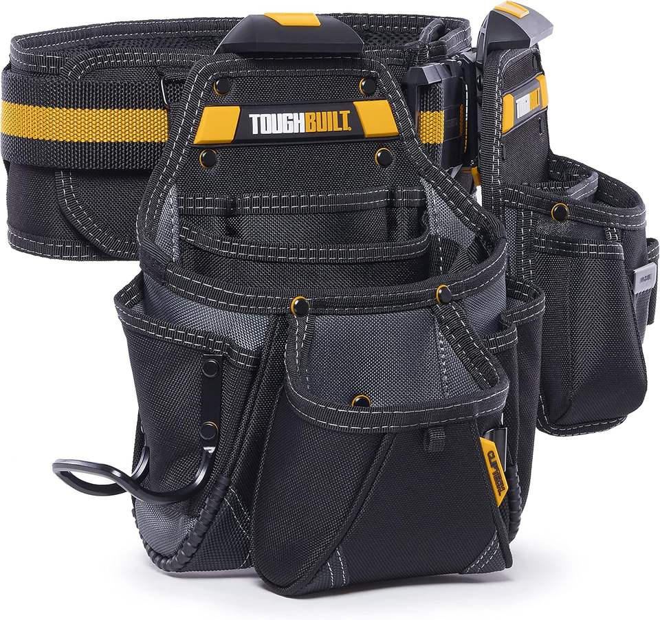 Plataforma de herramientas de muestra gratis con asas de transporte, cinturón de herramientas de primera calidad, cinturón acolchado de malla de aire que se adapta a cinturas de hasta 50 pulgadas