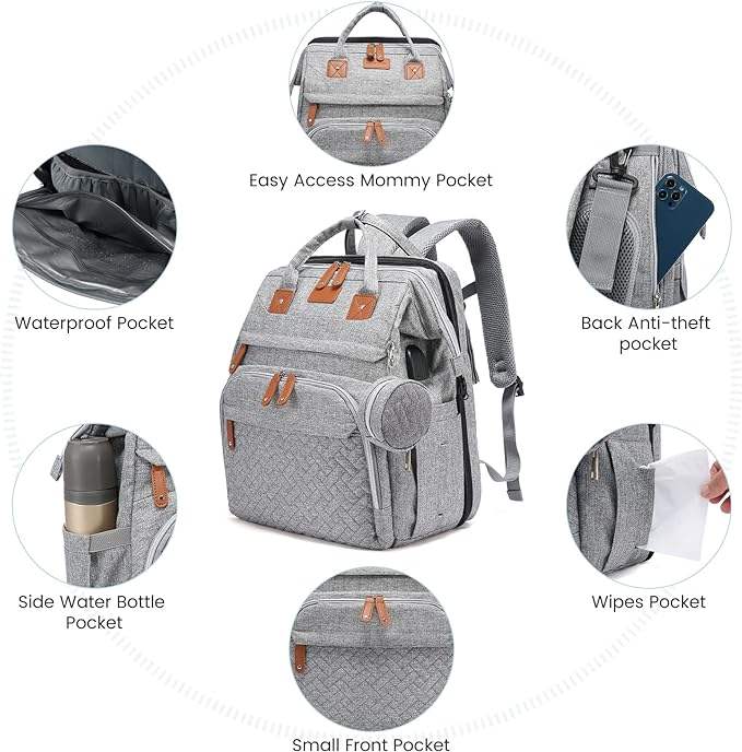 Muestra gratuita de bolsas de pañales para mamás viajeras con múltiples usos, juego de cuatro piezas de bolsas de pañales tipo tote para bebés