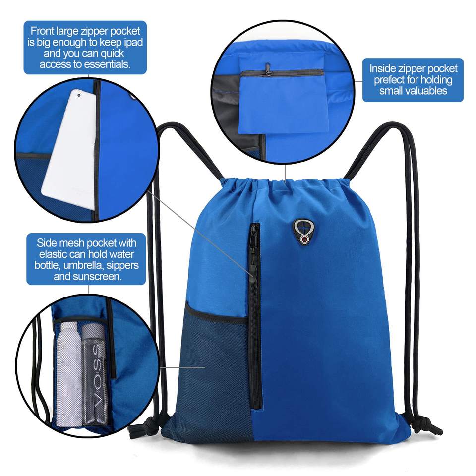 Muestra gratis impermeable Draw String Bag Nylon Oxford Poliéster Gimnasio Deporte Cordón Mochila Bolsa de natación con logotipo de impresión personalizado