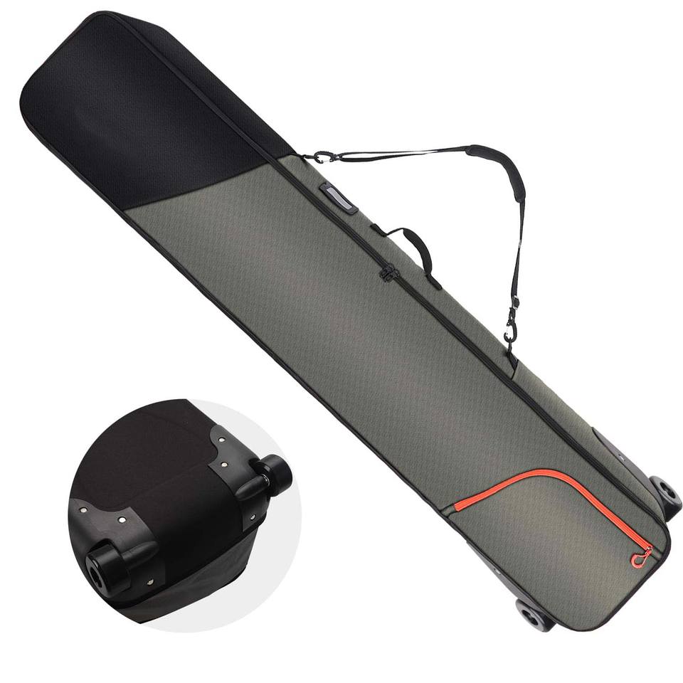 Muestra gratis Bolsa impermeable para snowboard Se adapta a 2 piezas de esquí y bolsa para botas Bolsa de esquí acolchada con ruedas para viajes aéreos con correa