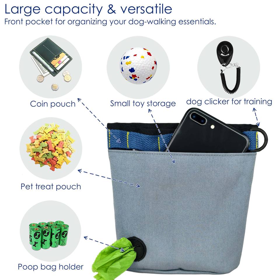 Bolsa de Lona Encerada para Premios de Perros, Muestra Gratis, para Exteriores, Bolsa Portátil para Premios de Entrenamiento de Cachorros con Ganchos, Manos Libres