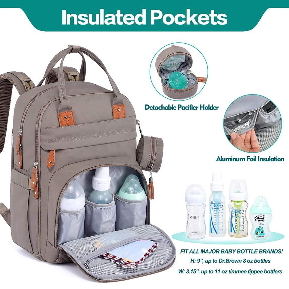 Muestra gratuita de mochila pañalera para mujer con capacidad extra, versátil para bebés varones o niñas