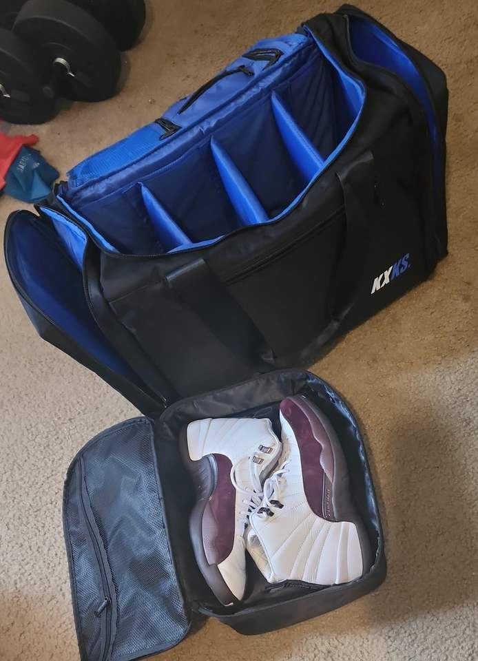 Muestra gratuita de bolsa de entrenamiento deportiva, bolsa de baloncesto, bolsa de fútbol y zapatillas deportivas de fábrica con tres divisores móviles.