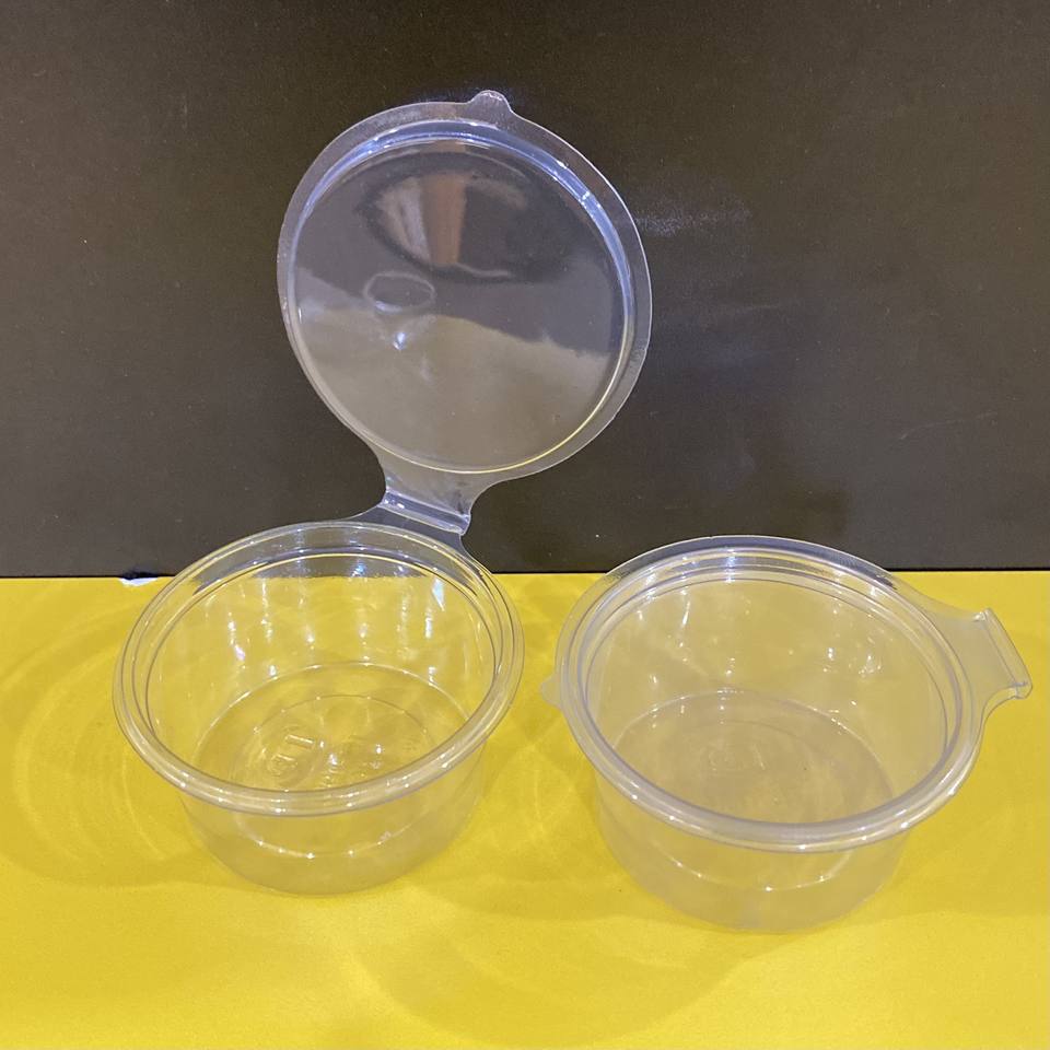 Fabricante de muestras gratis Tazas de salsa de plástico PET 2oz 60ml Contenedor de salsa desechable para ir con tapa con bisagras Precio bajo Mini pequeño