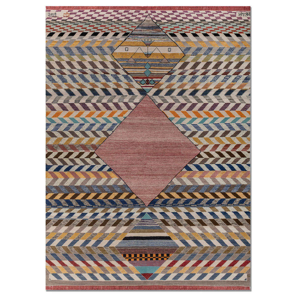 Alfombra Freedom Manchaha de Lana y Seda de Bambú con Patrón Geométrico Azul, Anudada a Mano, para Decoración de Sala de Estar - Les-8085