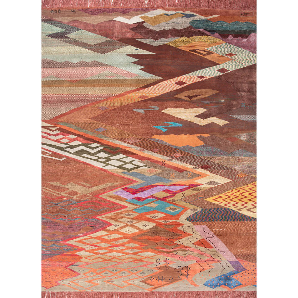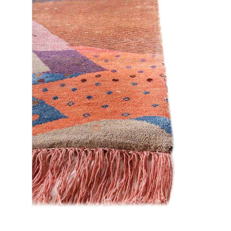 Alfombras Geométricas Grandes de Lana, Bambú y Seda Freedom Manchaha, Anudadas a Mano, Rojo Naranja, para Adolescentes, Diseños Rectangulares para Pasillos y Hogar