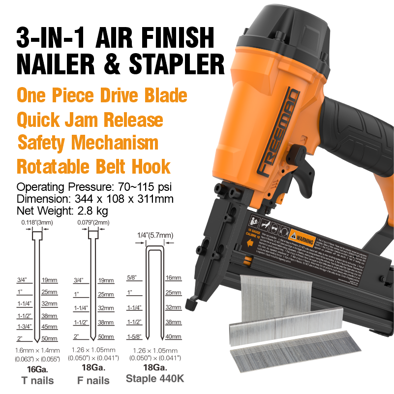 Calibre 16 y calibre 18 3 en 1 clavadora y grapadora PnuematicNombre del producto