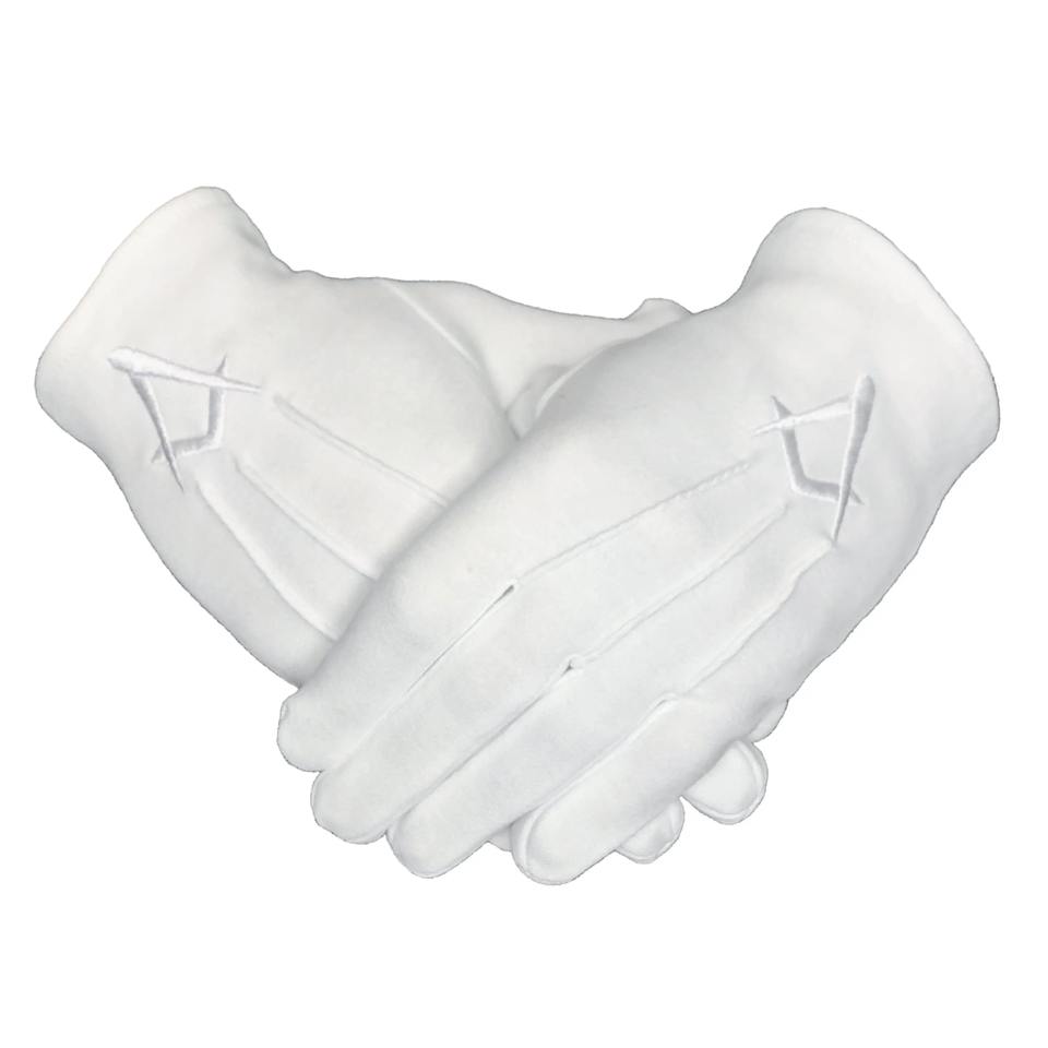 Freemasons Real Dress Logotipo personalizado Bordado hecho a mano 100% Tela de algodón Guantes masónicos