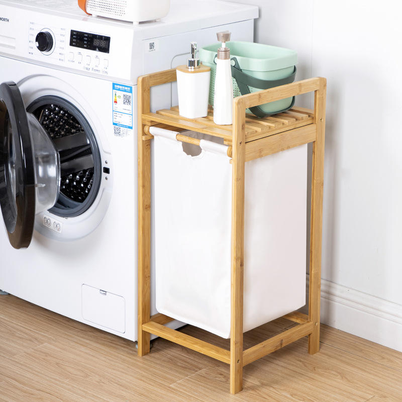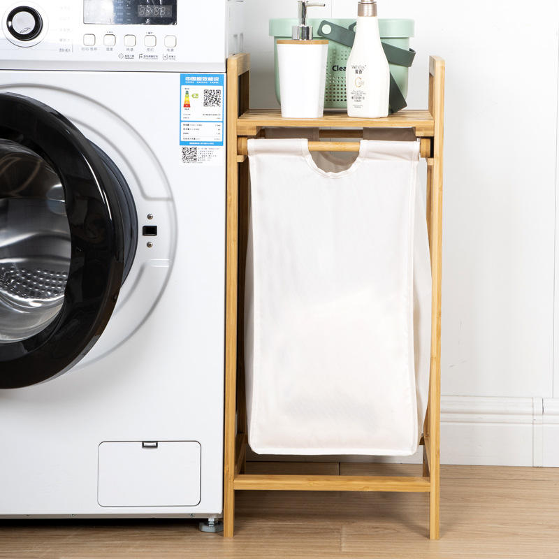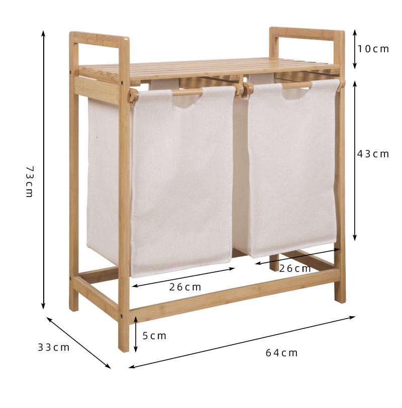 Nombre del producto:Clasificador de lavandería de 2 compartimentos con marco de bambú
