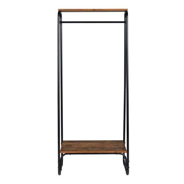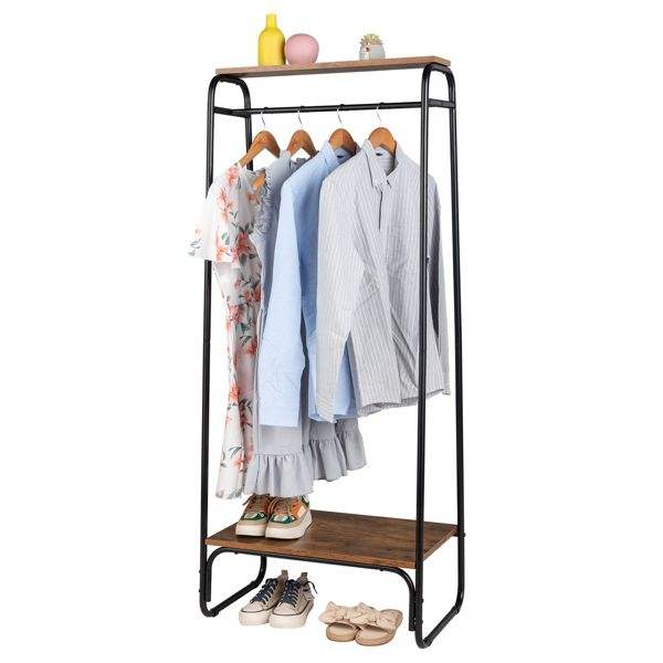 Perchero de Metal Negro Independiente con Estante de Madera, Perchero Resistente para Ropa