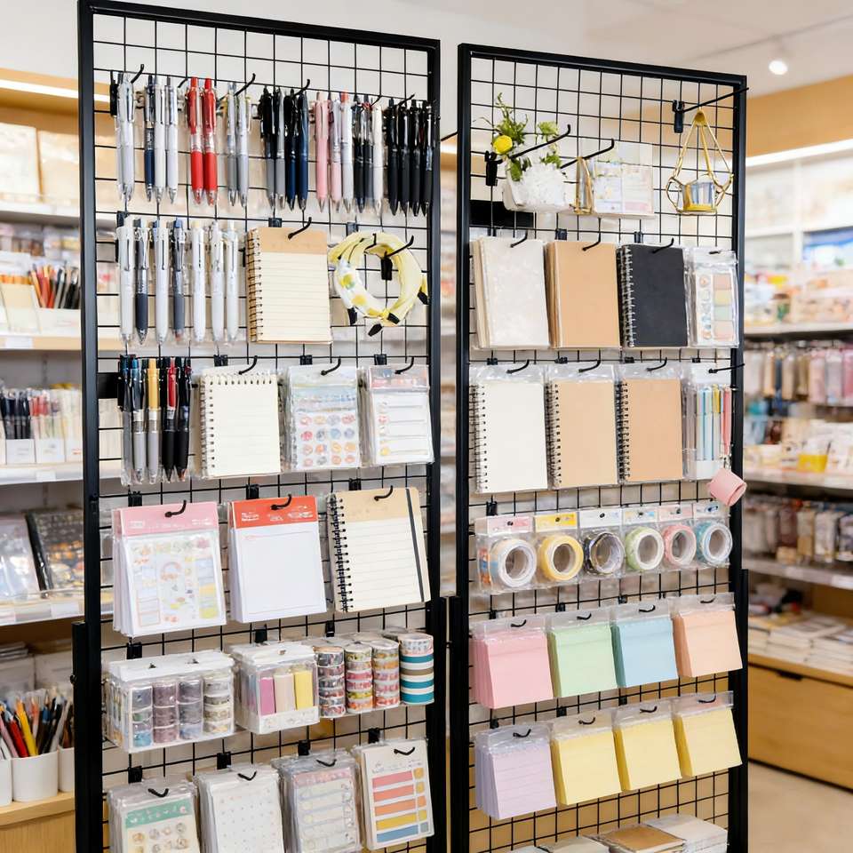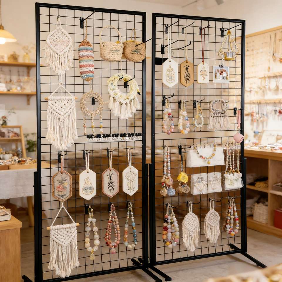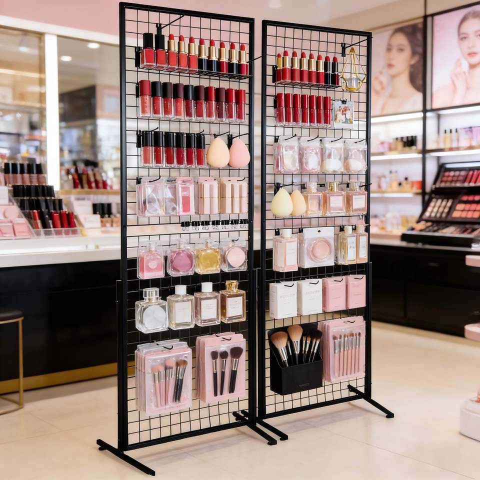 Estante de exhibición de paneles de rejilla independiente de malla metálica resistente para boutique, feria de artesanías y almacenamiento en el hogar
