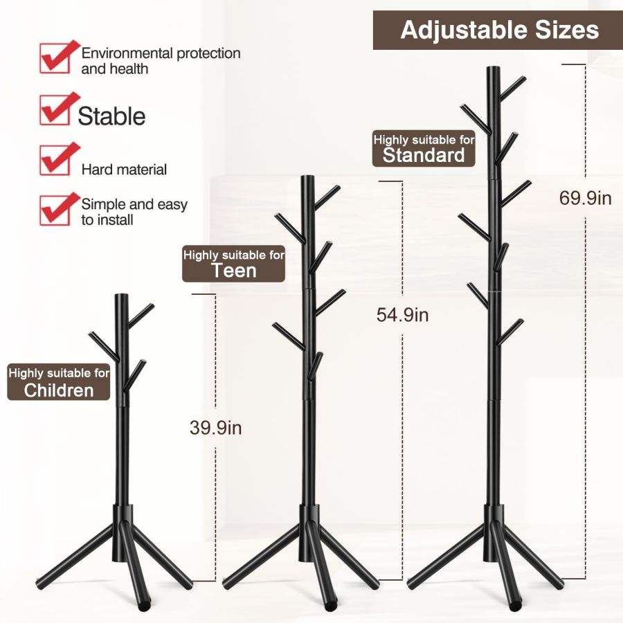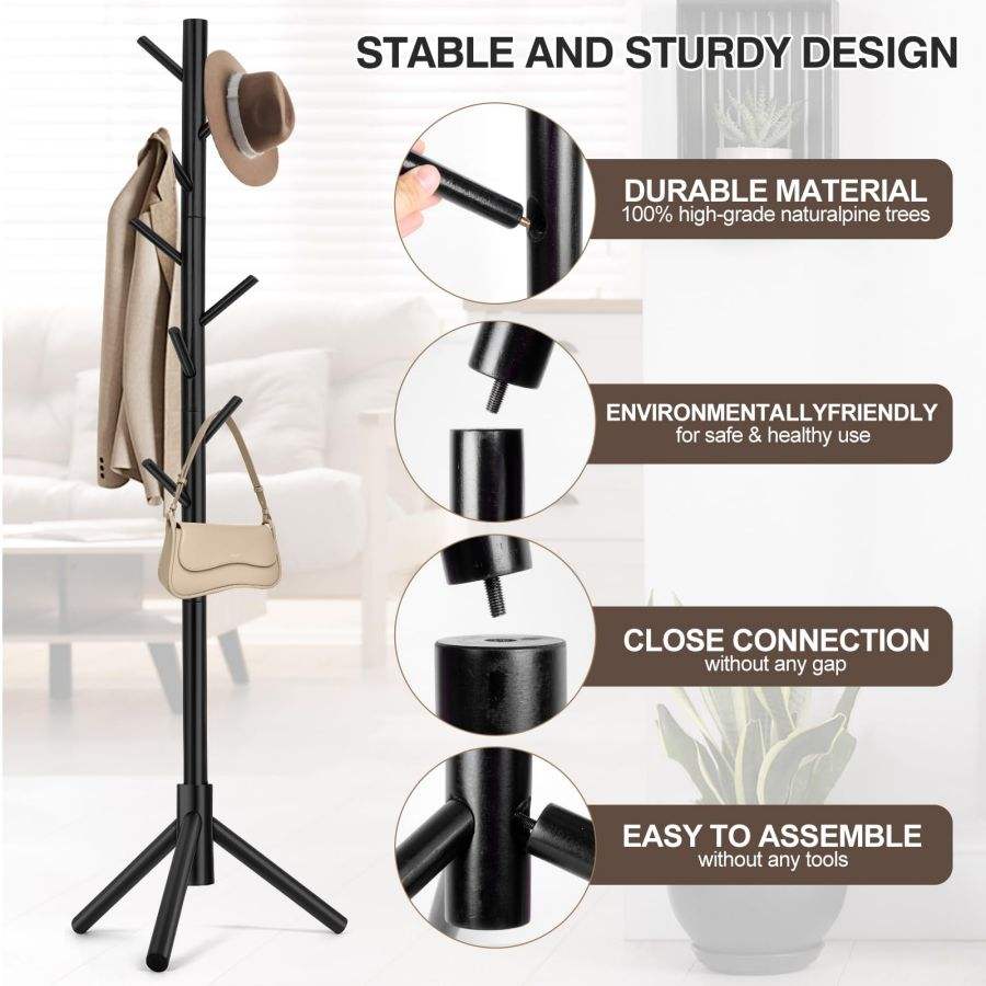 Perchero de pie de madera con forma de árbol y 8 ganchos, desmontable, para dormitorio, entrada o sala de estar