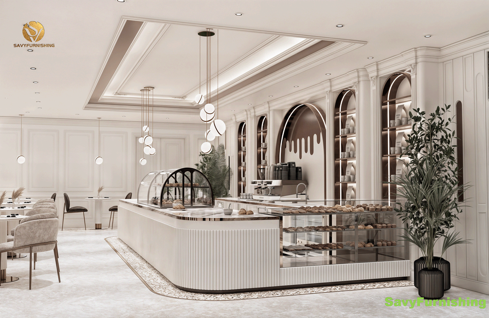 Panadería francesa Cafetería Diseño de interiores Pastelería moderna Mostrador de exhibición Constructor Cómodo Café Restaurante Muebles Conjunto en venta