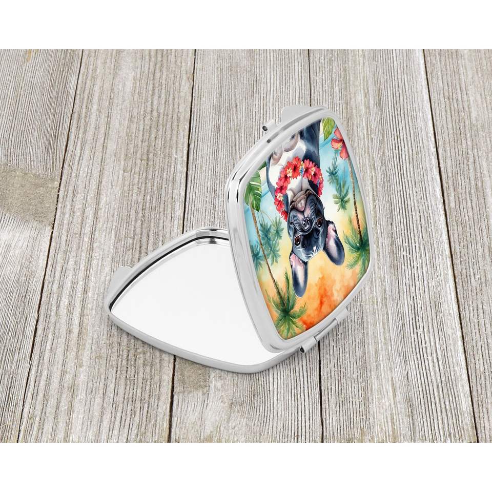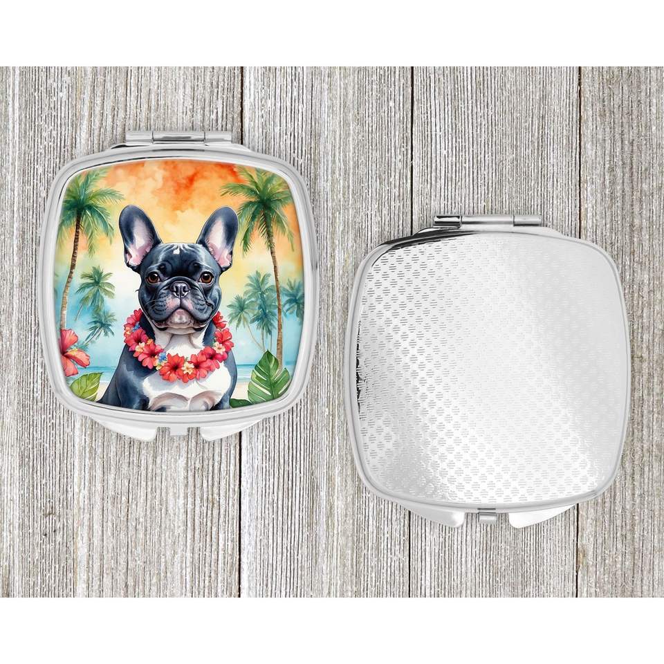 Bulldog Francés Luau compacto espejo de maquillaje de viaje decorativo espejo de bolsillo plegable de mano para regalo de mujeres y niñas