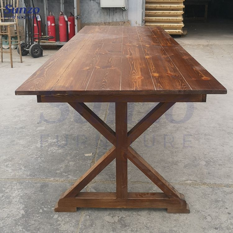 Mesa de comedor rústica de madera de campo francés, mesa de comedor de granja vintage para eventos
