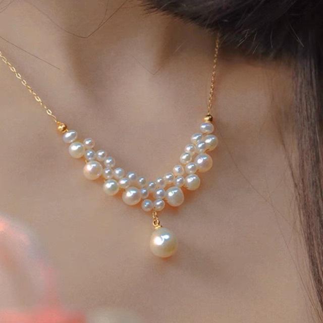 Collar de Encaje Hecho a Mano Estilo Corte Francesa, Perlas Naturales de Agua Dulce con Luz Intensa, Regalo de Lujo para Novias