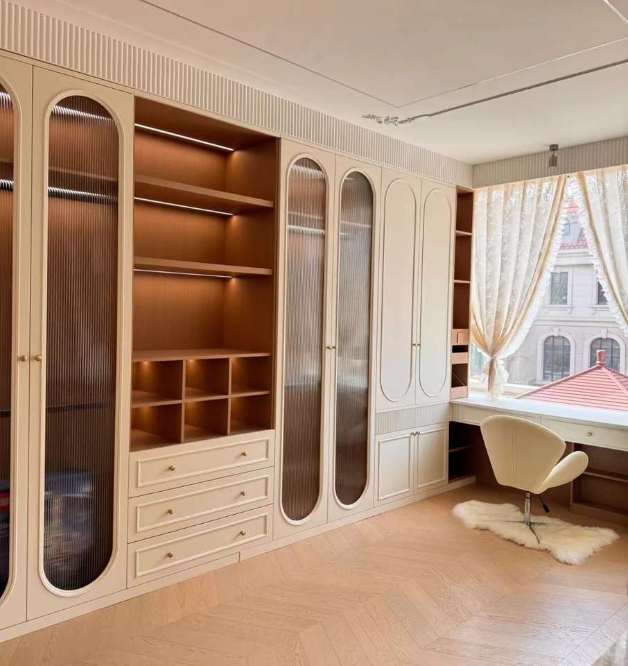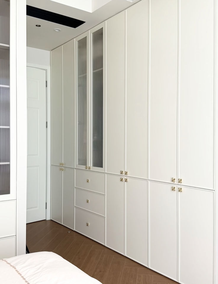Armarios de dormitorio de Metal de estilo crema francés, muebles de sala de estar modernos para el hogar, cajón ajustable extensible con Panel de madera