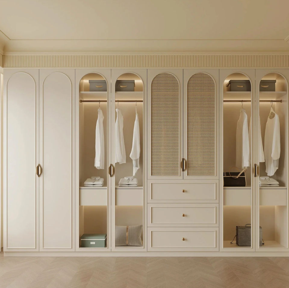 Muebles de dormitorio modernos de estilo crema francés, armario plegable independiente duradero para apartamento, hogar, Hotel, comedor, uso
