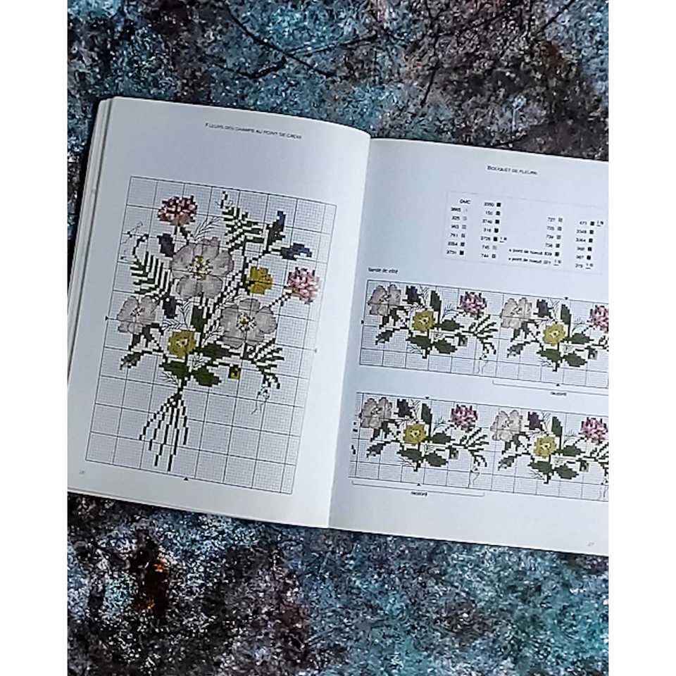 Libro de Patrones de Punto de Cruz Francés, Flores de Campo (Flores Silvestres) en Punto de Cruz con Diagramas a Todo Color - Excelente Estado
