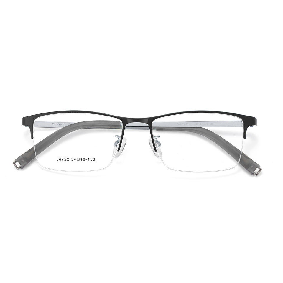 Gafas de Hombre con Diseño Francés, Montura Rectangular Media, Modelo 34722 54-16-150, Puntas de Patillas Antideslizantes