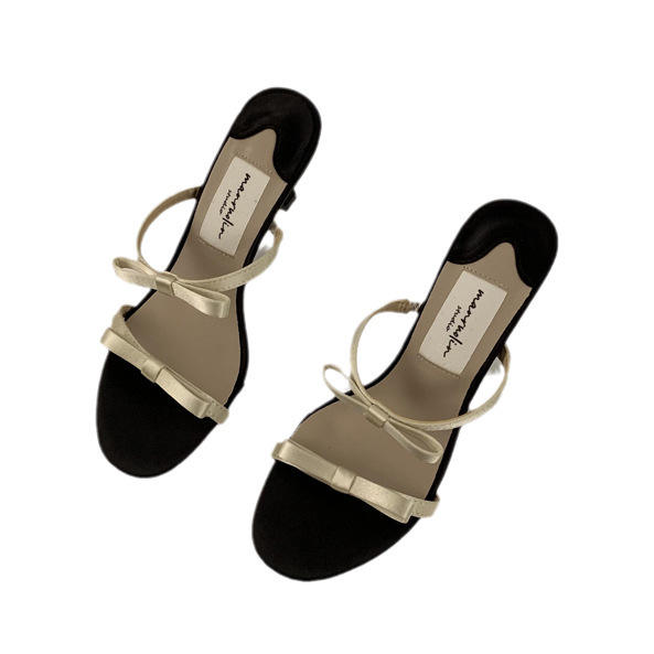 Sandalias de Tacón Alto con Diseño de Tiras, Estilo Hada Francesa, Punta Abierta, Color Negro para Mujer, Tacón Delgado para Hombre, Hermosas para las Tendencias de Moda de Verano
