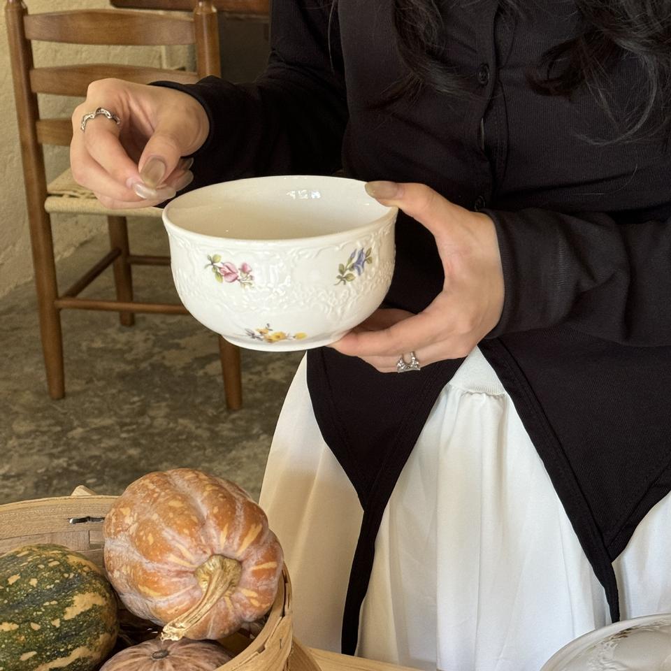 Plato de cena de cerámica en relieve Floral romántico Medieval francés, plato de pastel de postre occidental de alta apariencia, taza de café, platillo, planta