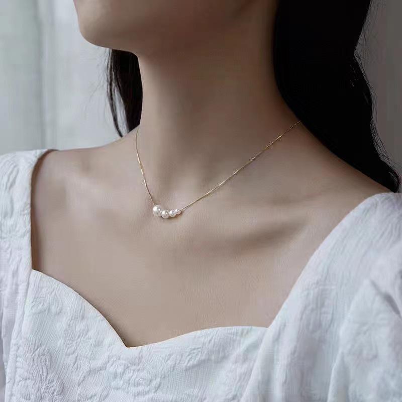 Collar de Perlas de Agua Dulce Naturales con Temperamento Minimalista Francés, Plata S925 Chapada en Oro, Diseño de Nicho