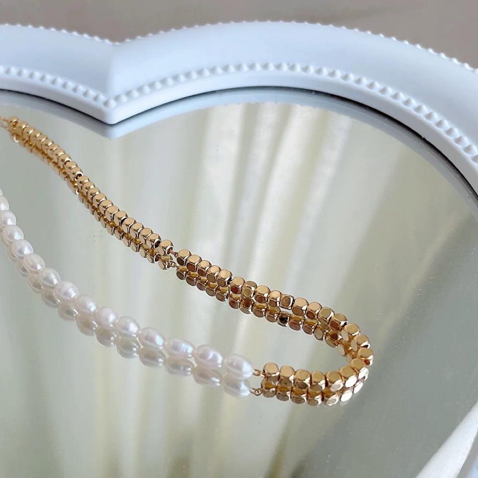 Collar de Perlas de Agua Dulce Naturales Francesas, Versátil, Simple, Asimétrico, Cadena para Clavícula, Estilo Moderno y de Nicho, en Capas