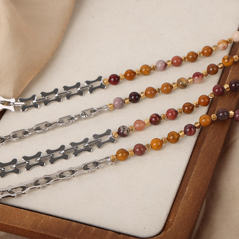 Nuevo estilo francés de alta calidad, moda Retro, yema de huevo Natural, cadena AB con cuentas, hebilla OT, collar de cuentas redondas de hueso, joyería