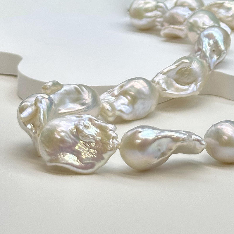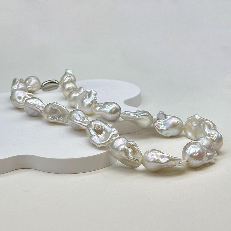 Collar de Perlas Barrocas Grandes con Cuentas Completas, Estilo Retro Francés, Diseño Simple y Moderno
